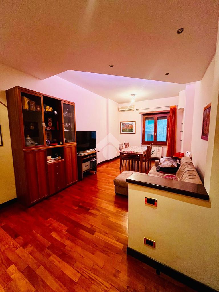 L'appartamento è composto da un comodo ingresso con soggiorno a vista; dall'ingresso, sviluppa il corridoio che conduce a tutti gli altri ambienti della casa, tra cui le due camere da letto, la cucina abitabile, il bagno, il ripostiglio ed il balcone.
